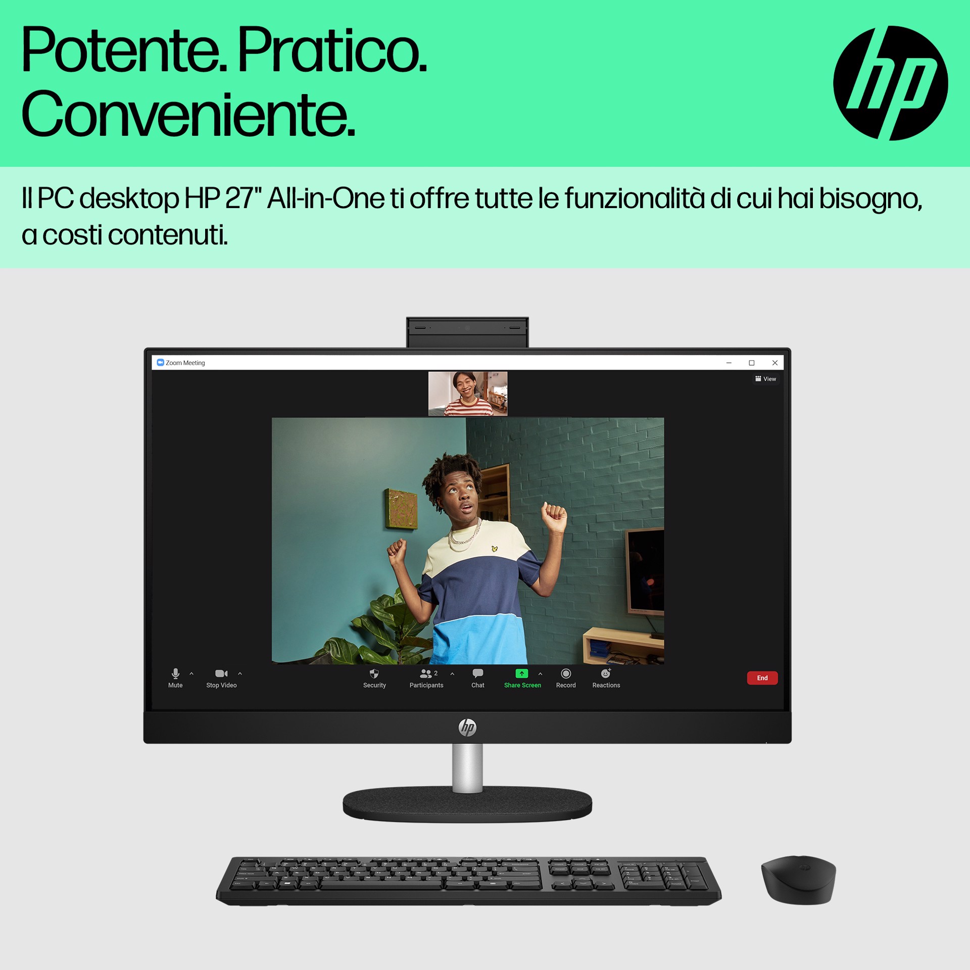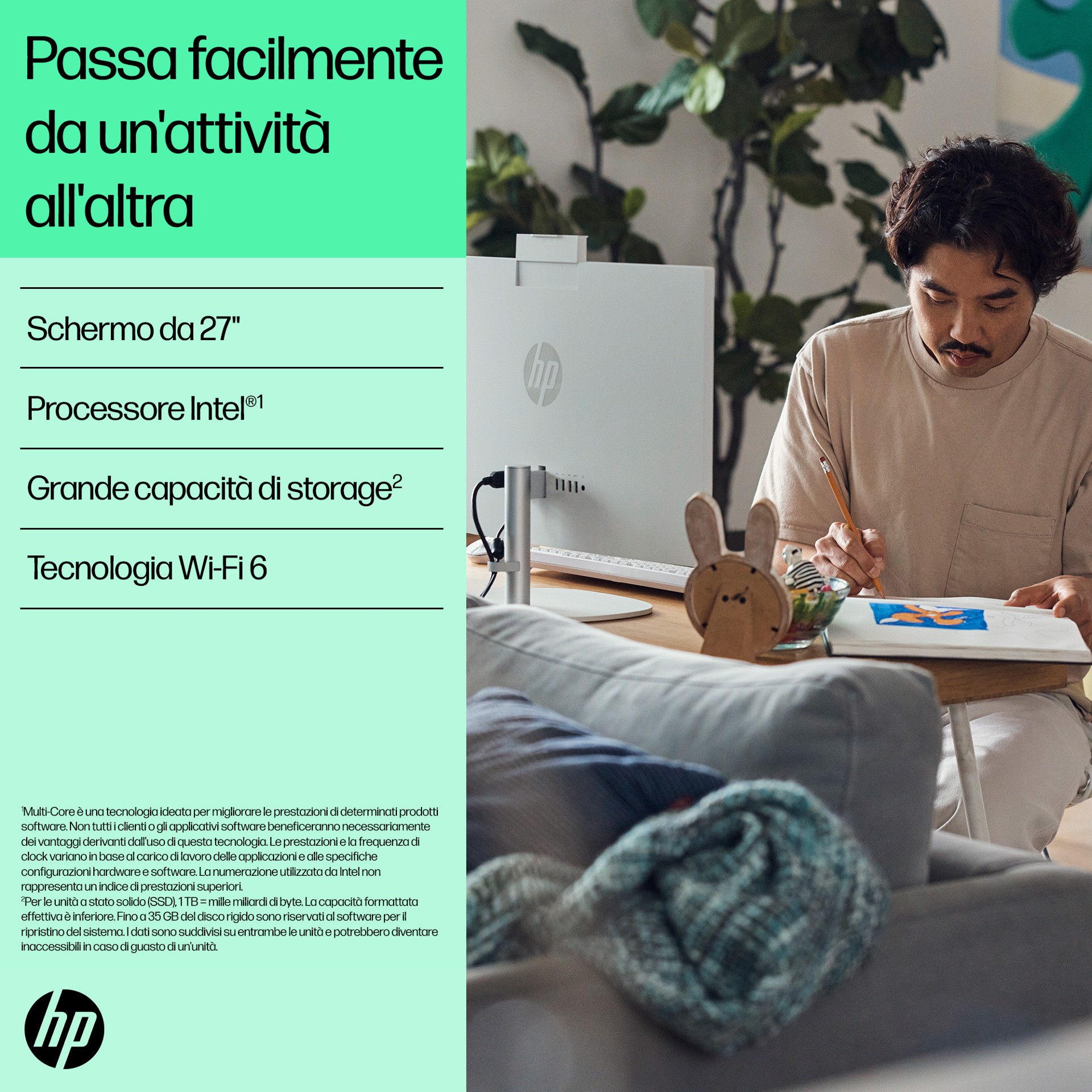 Il PC desktop HP 27" All-in-One ti consente di fare di più con meno. Realizzato in modo responsabile con plastica riciclata post-consumo e plastica potenzialmente destinata agli oceani[1], accompagnato da registrazione EPEAT Gold e dotato di certificazione ENERGY STAR[2]. Con un potente processore, memoria di livello superiore e funzionalità multitasking potenziate, le prestazioni saranno sempre elevate, senza compromessi.