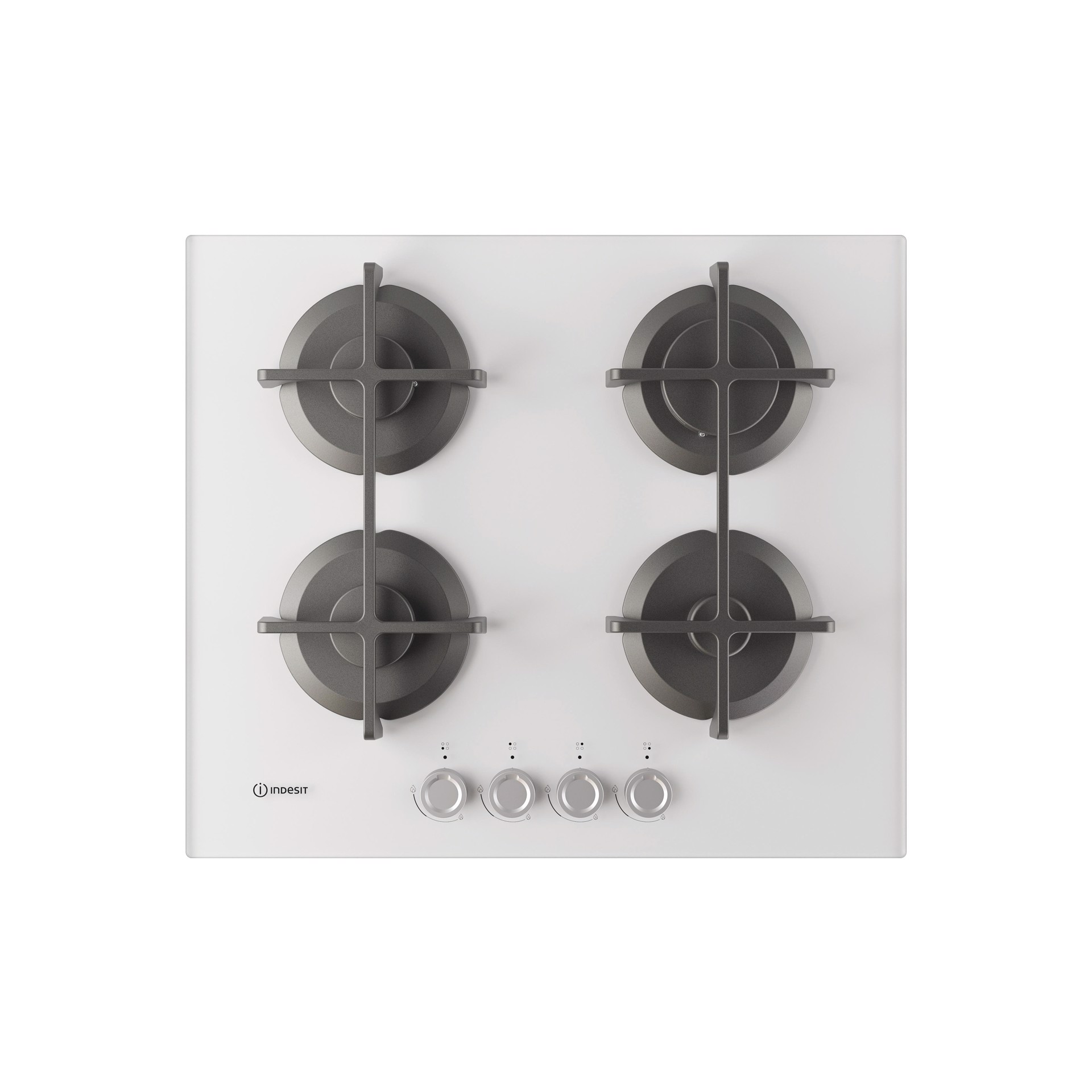 Indesit ING 61T/WH 1 piano gas vetro tortora 60cm 4 fuochi griglie in ghisa lavabili in lavastoviglie. Colore del prodotto: Bianco, Posizionamento dell'apparecchio: Da incasso, Dimensione della larghezza del piano cottura: 60 cm. Tipo di controllo: Manopola, Posizione di controllo: Frontale. Potenza aggregata (gas): 7300 W, Tensione di ingresso AC: 220-240 V, Frequenza di ingresso AC: 50/60 Hz. Larghezza: 590 mm, Profondità: 510 mm, Altezza: 49 mm. Larghezza imballo: 640 mm, Profondità imballo: 555 mm, Altezza imballo: 170 mm