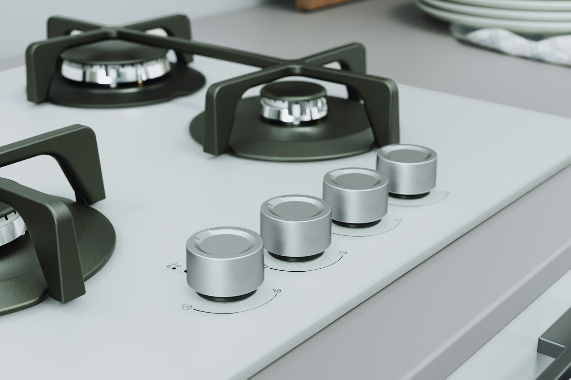 ING 61T/WH 1 piano gas vetro tortora 60cm 4 fuochi griglie in ghisa lavabili in lavastoviglie, Bianco, Da incasso, 60 cm, Gas, Vetro, 4 Fornello(i)
