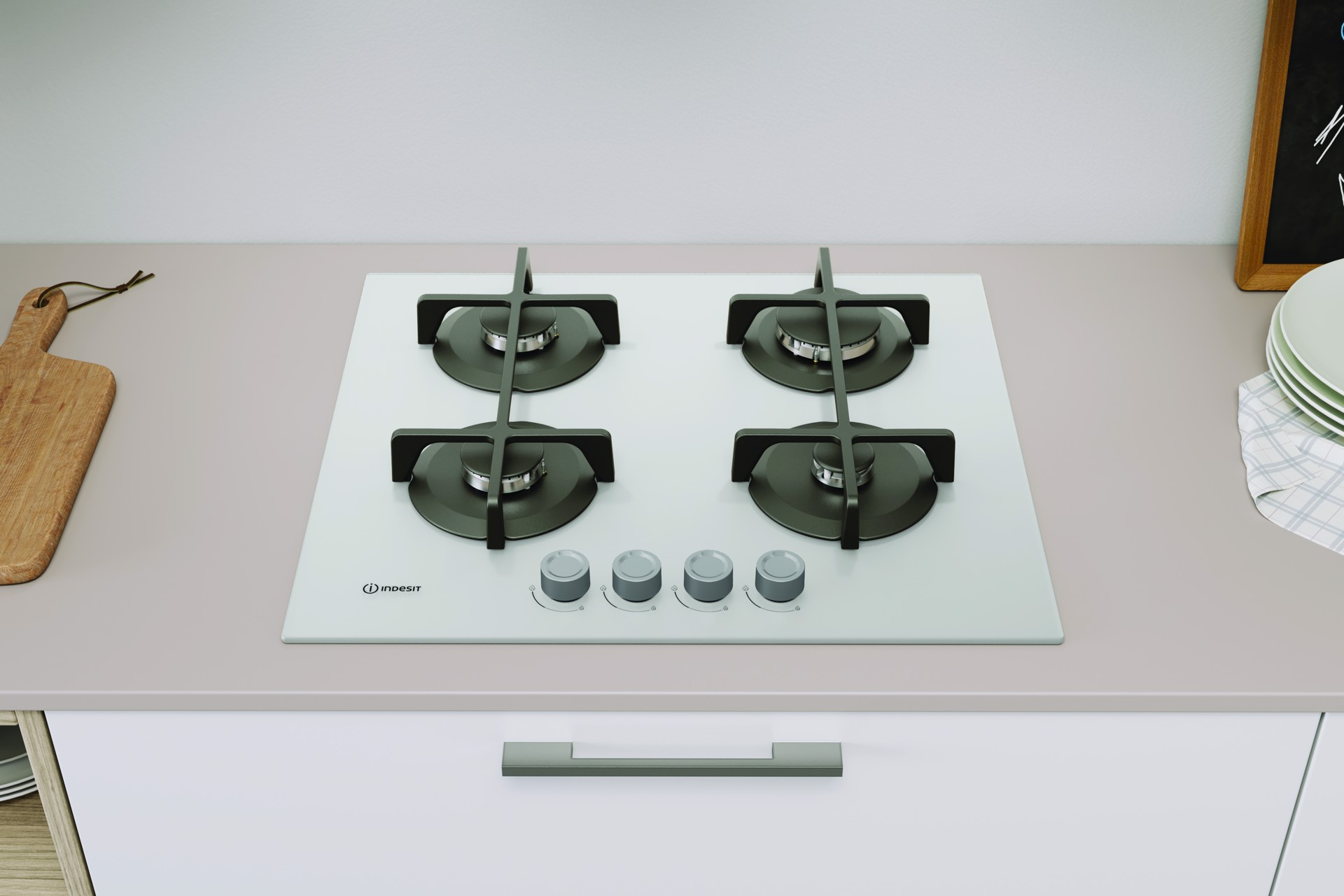 INDESIT ING 61T/WH 1 piano gas vetro tortora 60cm 4 fuochi griglie in ghisa lavabili in lavastoviglie
