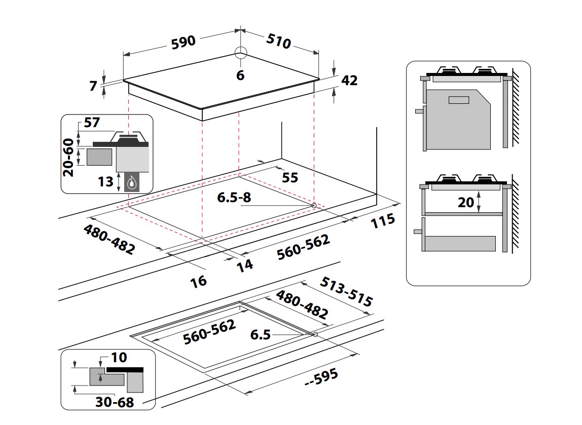 Dimensione della larghezza del piano cottura: 60 cm