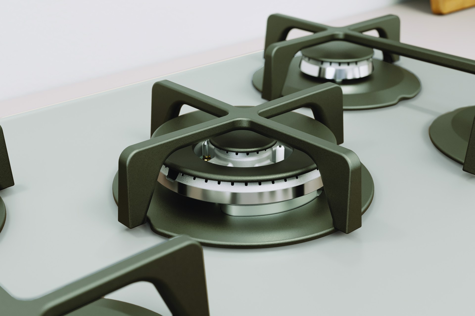 ING 72T/WH 1 piano gas vetro bianco 75cm 5 fuochi bruciatore doppia corona griglie in ghisa lavabili in lavastoviglie, Bianco, Da incasso, 75 cm, Gas, Vetro, 5 Fornello(i)