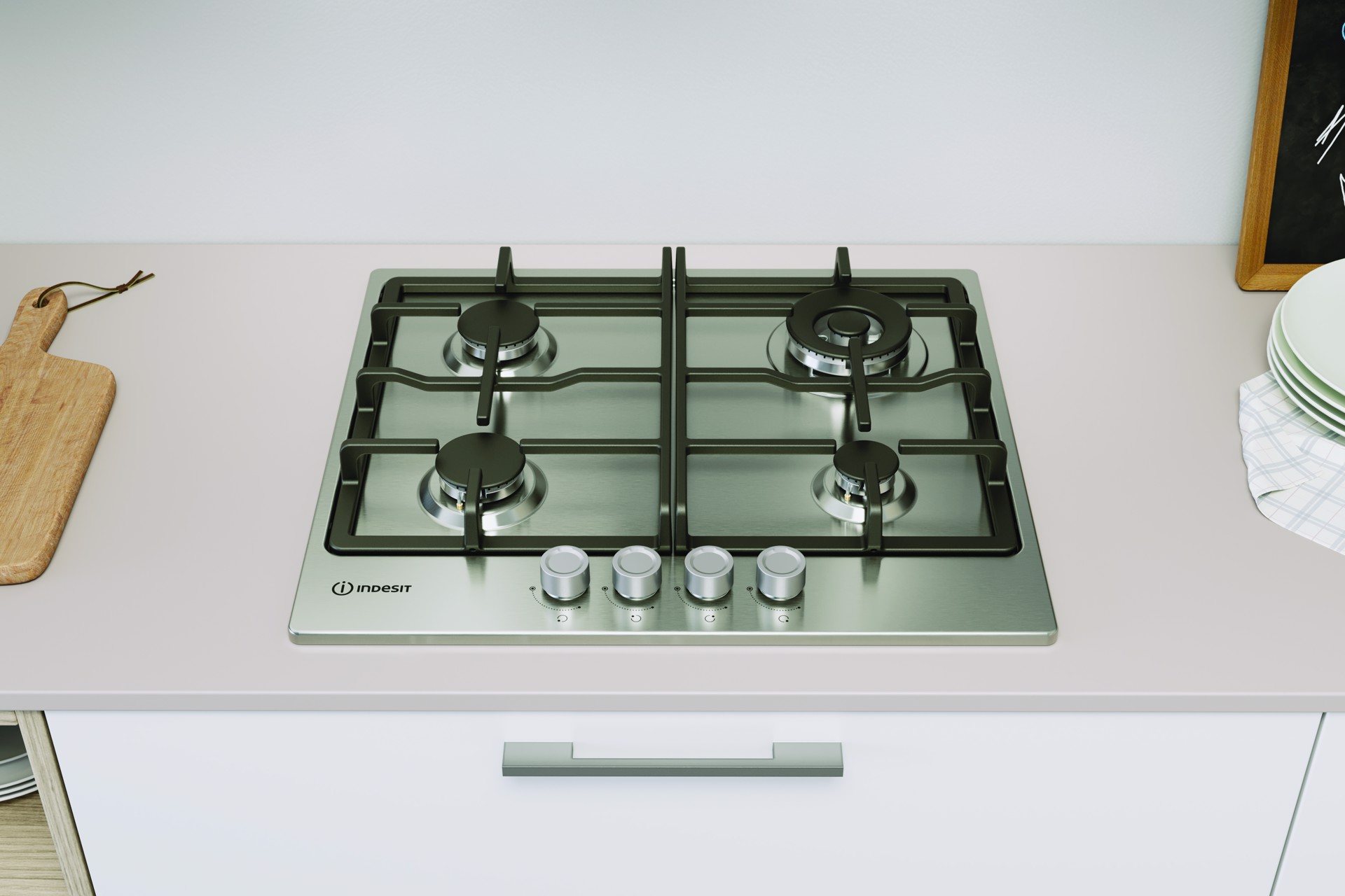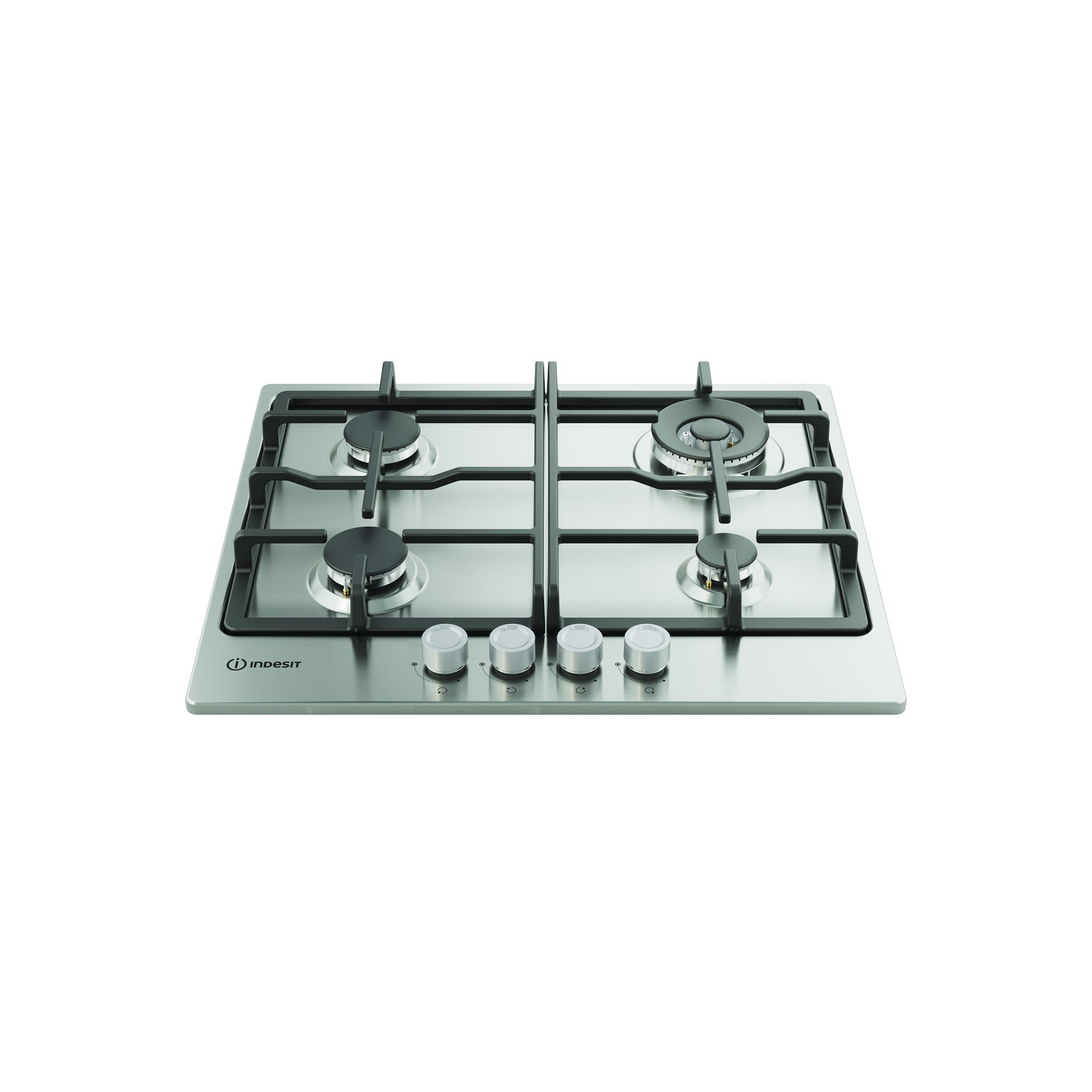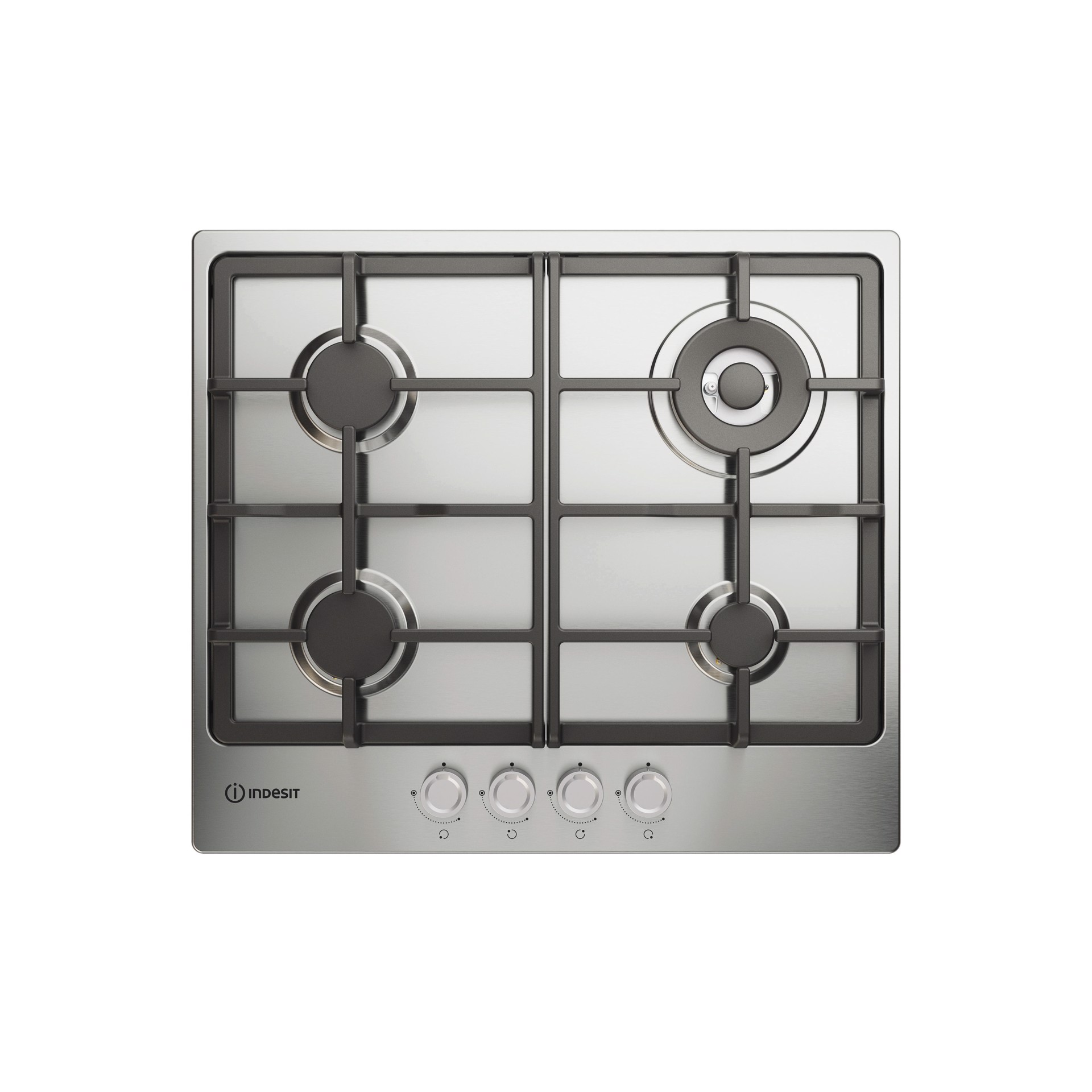 INDESIT THP 641 W/IX/I 1 piano gas inox 60cm 4 fuochi brucitaore doppia corona griglie in ghisa lavabili in lavastoviglie