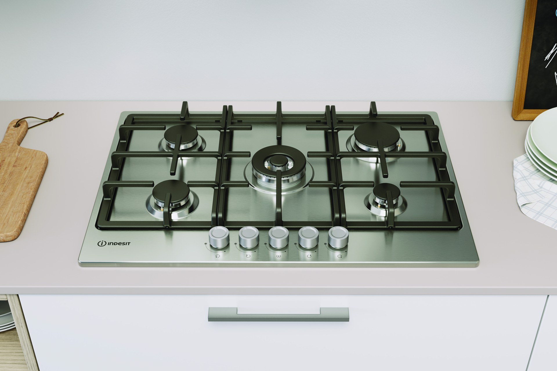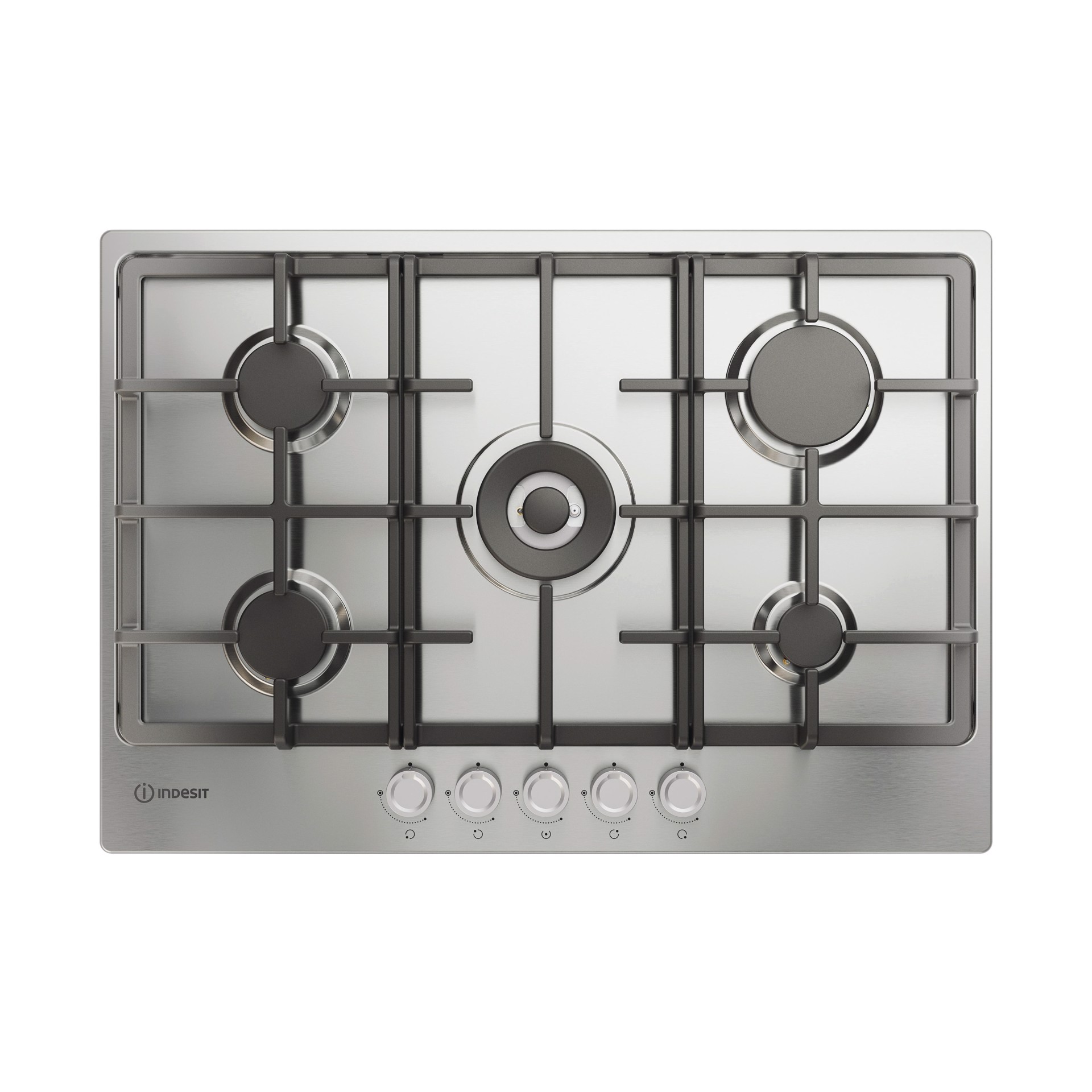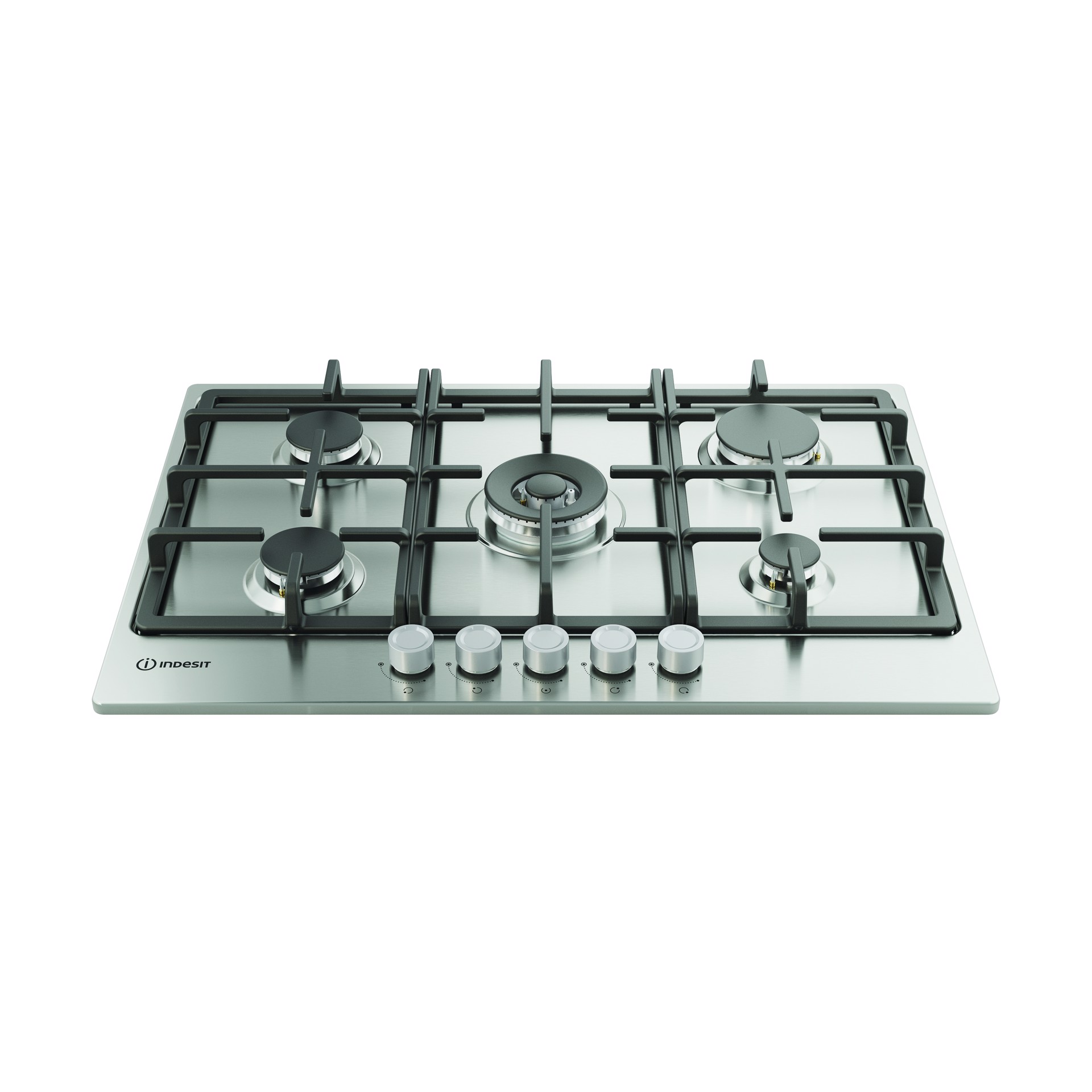 INDESIT THP 751 W/IX/I IT 1 piano gas inox 75cm 5 fuochi bruciatore doppia corona griglie in ghisa lavabili in lavastoviglie