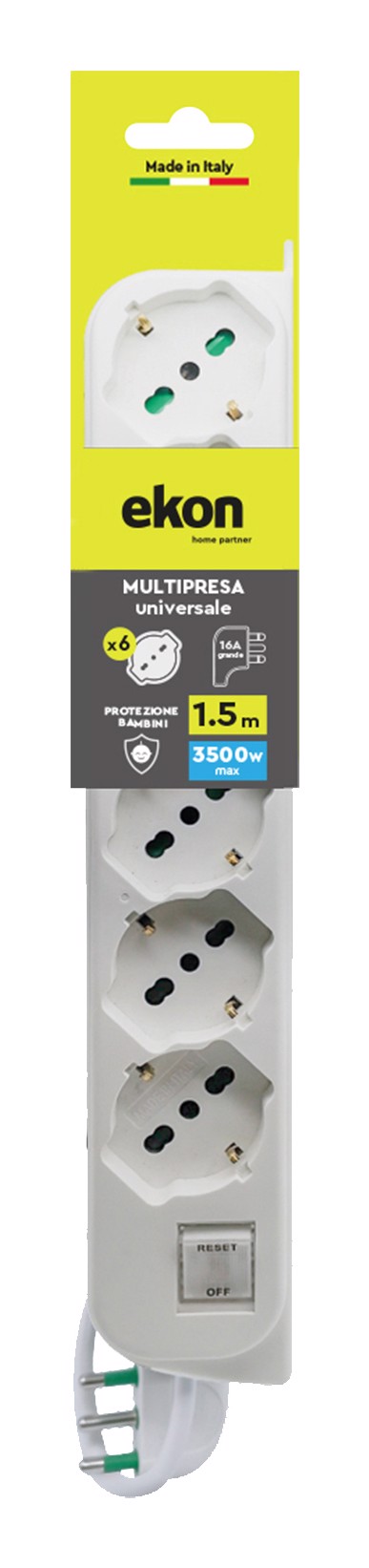 EKON ECELSTR6BIDESWIT16 prolunghe e multiple 1,5 m 6 presa(e) AC Interno Bianco
