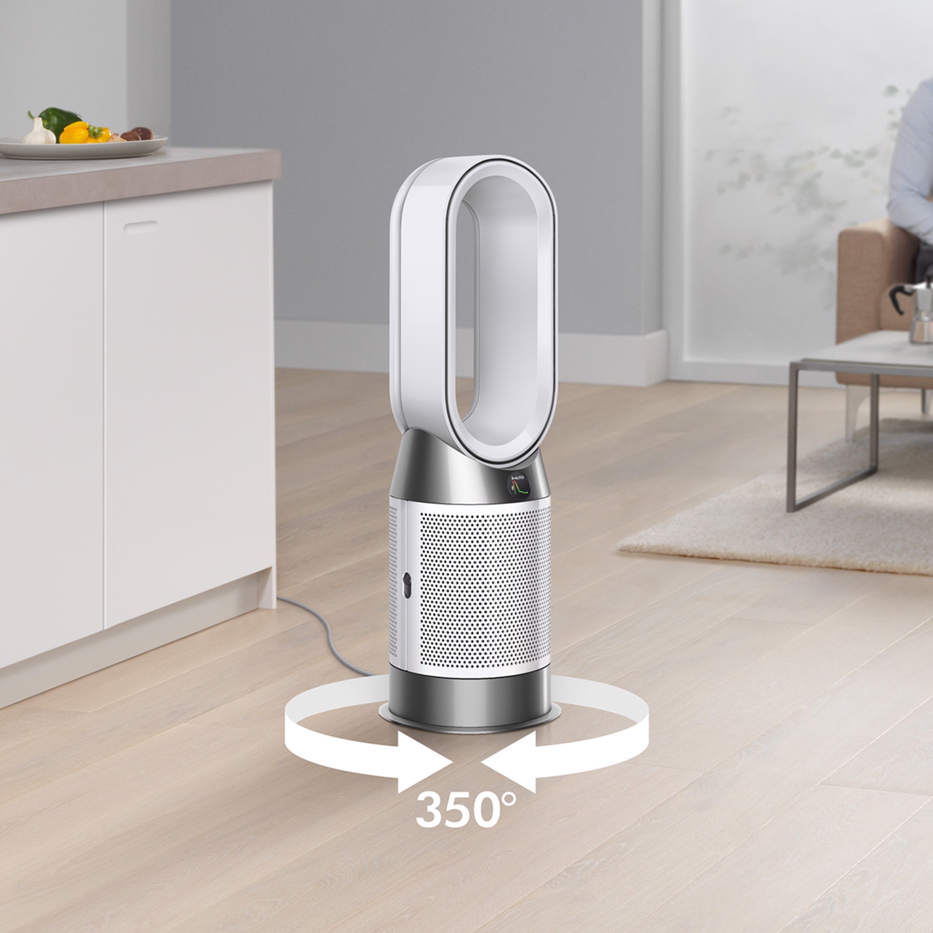 Diffonde aria purificata in tutta la stanza. L’oscillazione a 350 gradi diffonde e fa circolare l’aria purificata nell’intera stanza.