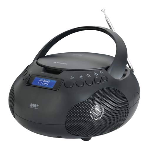 New Majestic AH-264 DAB. Tipo sintonizzatore: Digitale, Bande del sintonizzatore: DAB, DAB+, FM. Tipo drive ottico: Lettore, Tipi di dischi supportati: CD, Tasti di funzionamento: Riproduzione/Pausa, Skip down, Skip up, Stop. Tipo di display: LCD, Colore retroilluminazione: Blu. Colore del prodotto: Nero, Tipo di controllo: Pulsanti. Alimentazione: CA/Batteria, Tensione di ingresso AC: 230 V, Frequenza di ingresso AC: 50 Hz