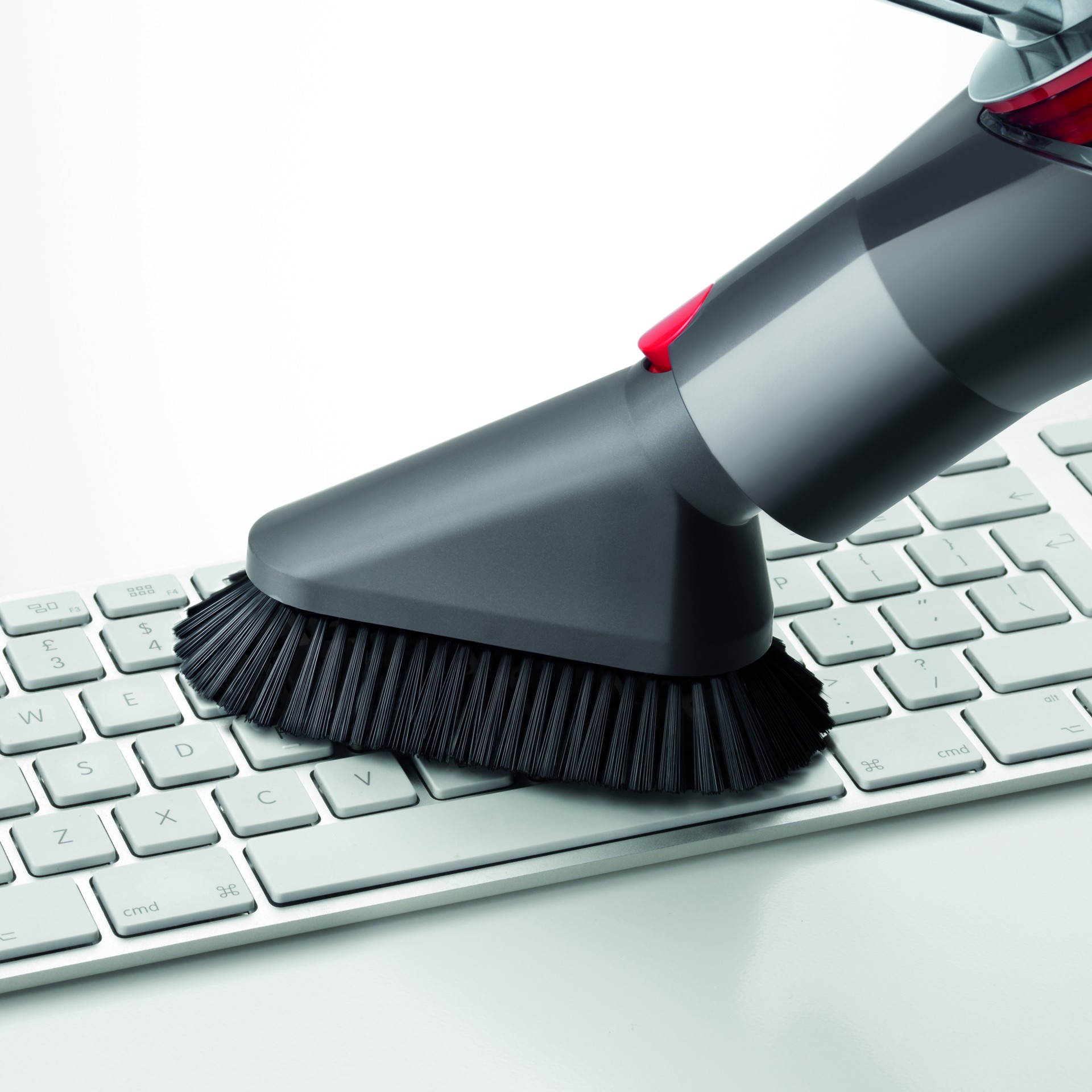 L’aspirapolvere Dyson V8 Absolute viene fornito con la spazzola morbida a rullo. Copertura a tutta ampiezza: morbido tessuto in nylon, con file di filamenti anti-statici in fibra di carbonio per rimuovere polvere fine e particelle grandi simultaneamente.