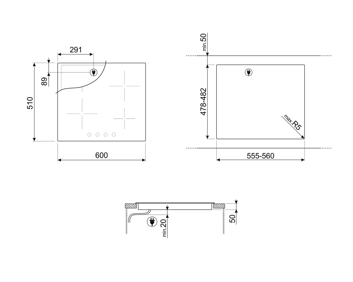 Smeg Cucina SI264DM. Colore del prodotto: Nero, Posizionamento dell'apparecchio: Da incasso, Tipo di piano cottura: Piano cottura a induzione. Bruciatore piccolo: 2300 W, Bruciatore medio: 1300 W, Bruciatore grande: 2300 W. Tipo di controllo: Manopola, Posizione di controllo: Frontale superiore. Potenza aggregata (elettrica): 7400 W, consumo di energia limitato supportato: 2600,3000,3800,4500 W, Tensione di ingresso AC: 220-240 V. Larghezza: 596 mm, Profondità: 510 mm, Altezza: 60 mm