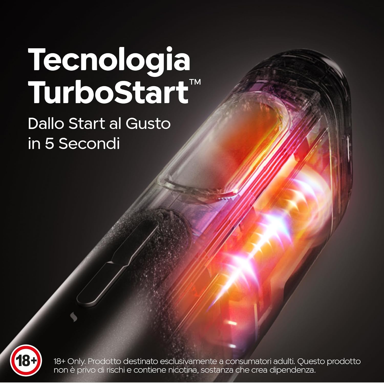 - Tecnologia TurboStart: dallo start al gusto in 5 secondi per Hilo, in meno di 10 per Hilo plus, per un’esperienza immediata e intensa