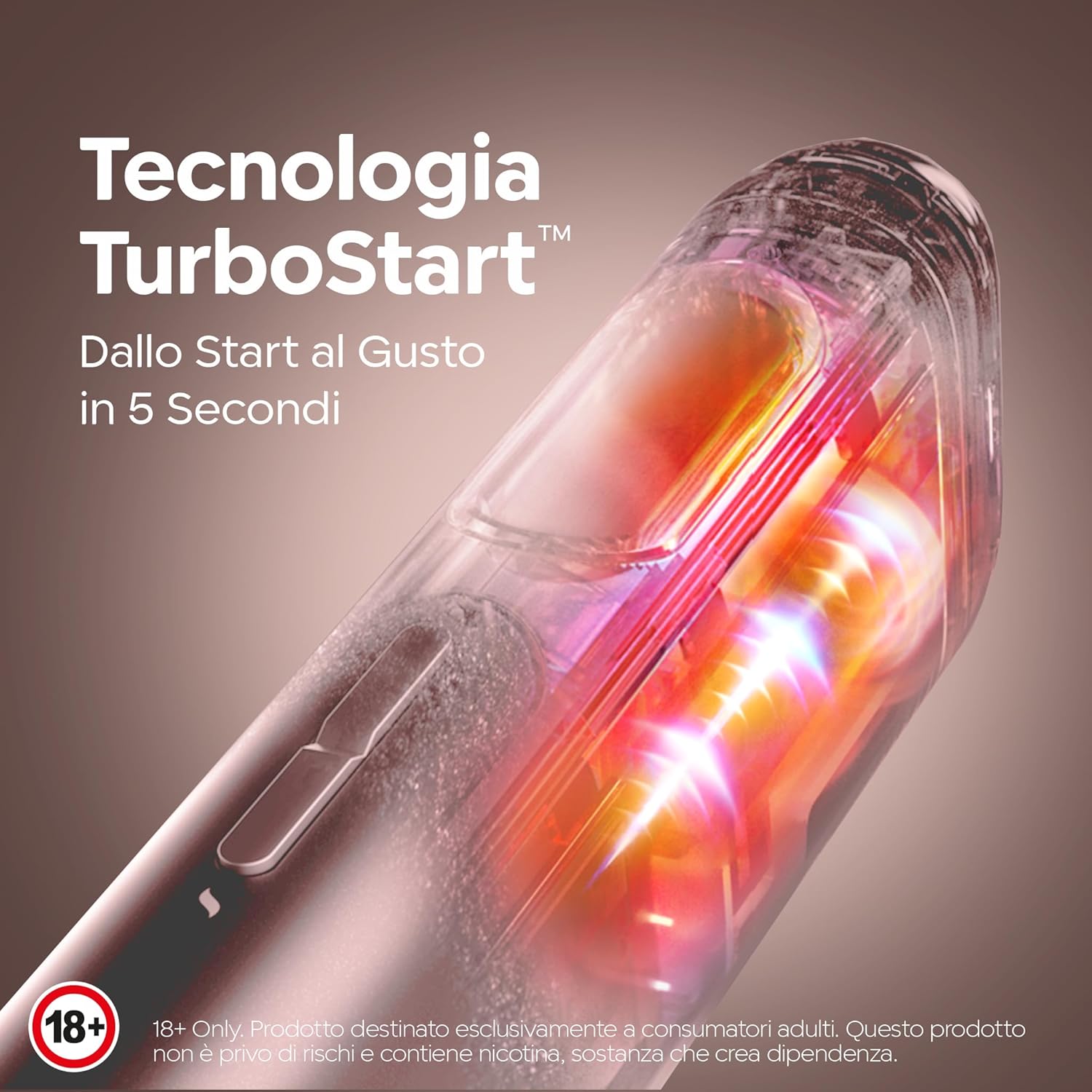 - Tecnologia TurboStart: dallo start al gusto in 5 secondi per Hilo, in meno di 10 per Hilo plus, per un’esperienza immediata e intensa