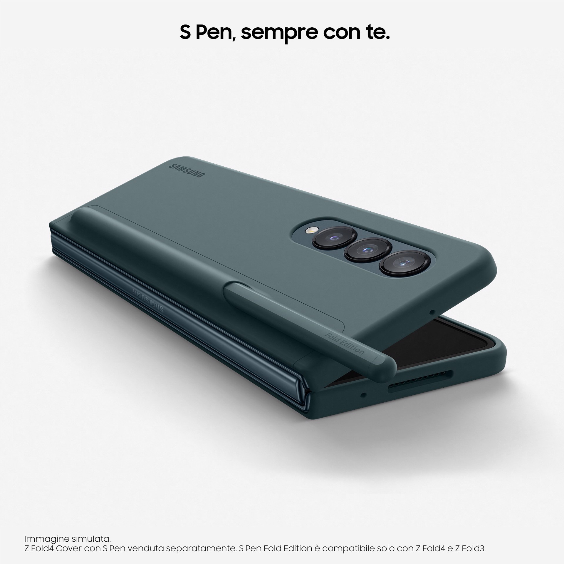 4_S Pen Fold Edition venduta separatamente. Utilizzare esclusivamente Samsung S Pen Pro o S Pen Fold Edition ideate specificamente per Galaxy Z Fold3 5G/Fold4. Tutte le altre S Pen o penne stilo non progettate per Galaxy Z Fold4 (comprese quelle di altri produttori) possono danneggiare lo schermo. Il Galaxy Z Fold4 non dispone di un alloggio integrato per la S Pen. La S Pen è supportata unicamente sul display principale.