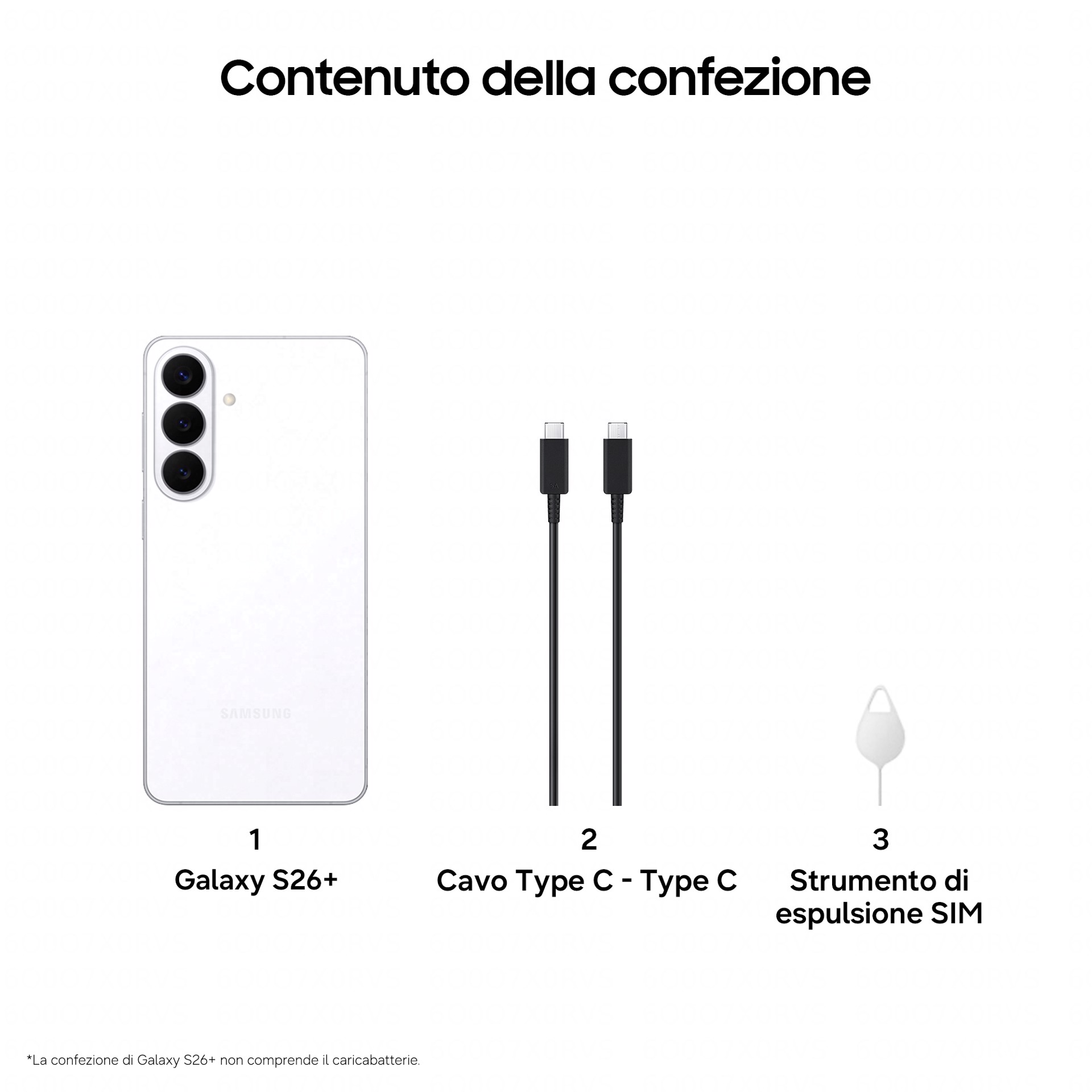 Galaxy S26+ Smartphone AI, 512GB, Processore avanzato, Assistente Foto, Creative Studio, Camera 50 MP, 4900 mAh, White, 17 cm (6.7"), 12 GB, 512 GB, 50 MP, Android 16.0, Bianco