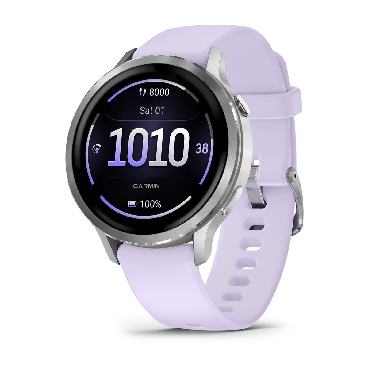 Garmin Venu 4. Dimensioni diagonale schermo: 3,05 cm (1.2"), Tecnologia display: AMOLED, Risoluzione del display: 390 x 390 Pixel, Touch screen. Memoria flash: 8 GB. Wi-Fi. GPS (satellitare). Peso: 33 g. Materiale cinturino: Silicone