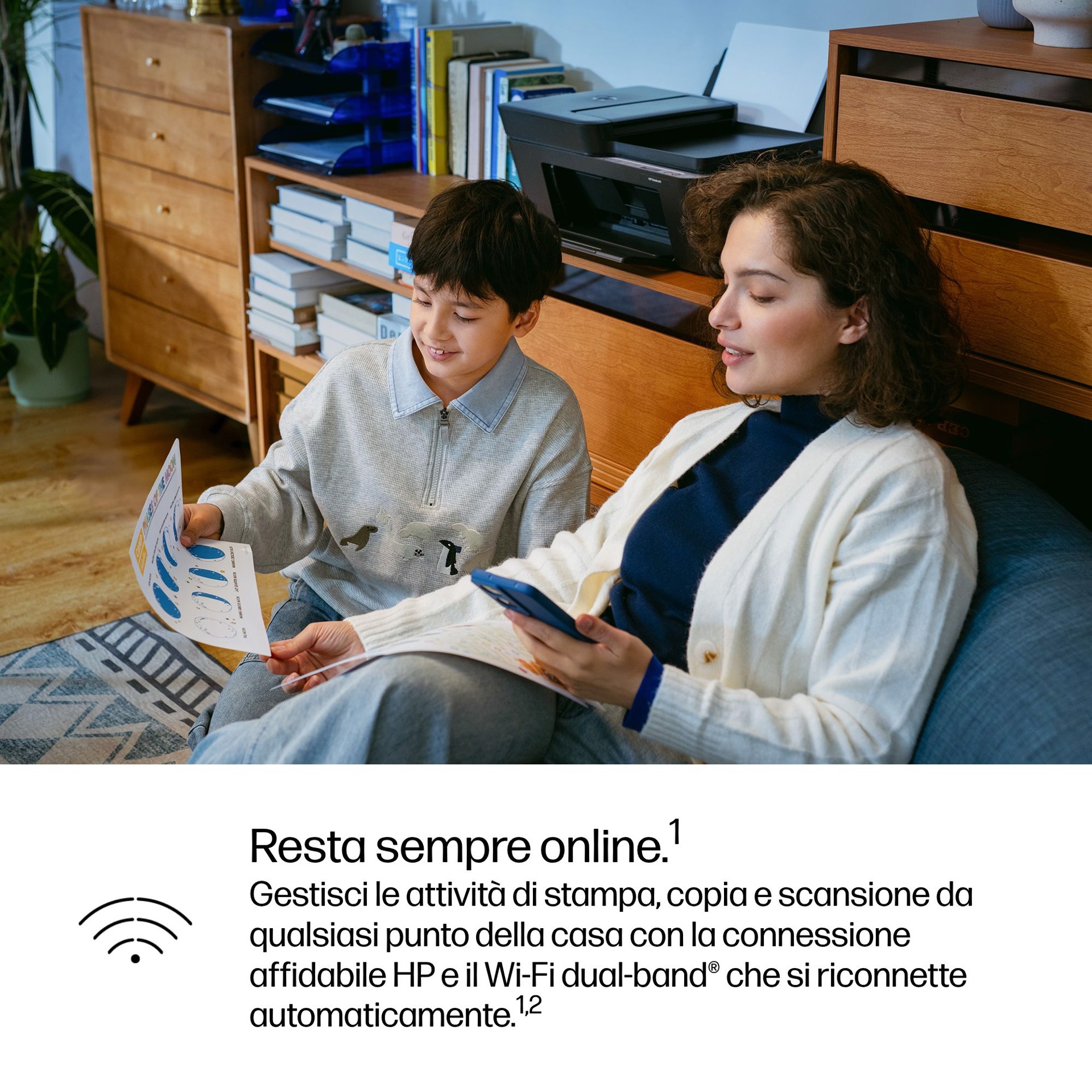 Ora stampare a casa è facilissimo Esegui in tutta semplicità stampe, copie e scansioni grazie a questa stampante wireless compatta e intuitiva, che include anche un alimentatore automatico di documenti. Stampa qualsiasi tipo di documento: dalle etichette di reso a coloratissimi compiti per la scuola.[3]. Idonea per HP Instant ink