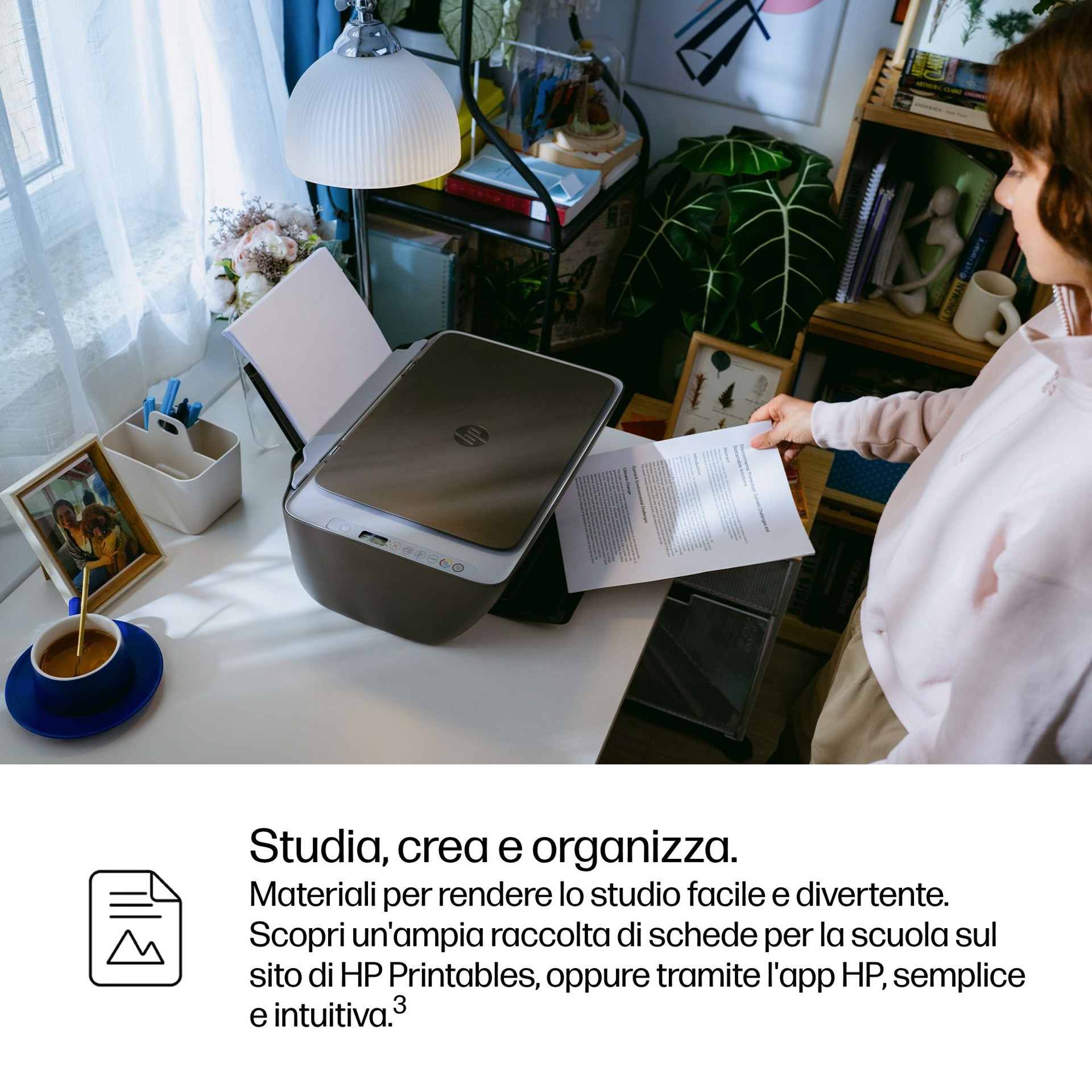 Ora stampare a casa è facilissimo Configurazione in un attimo grazie all'app HP, semplice e intuitiva. Stampa qualsiasi tipo di documento: dalle etichette di reso a coloratissimi compiti per la scuola. Semplifica le attività di stampa. Stimola la creatività e l'apprendimento.[3]. Idonea per HP Instant ink