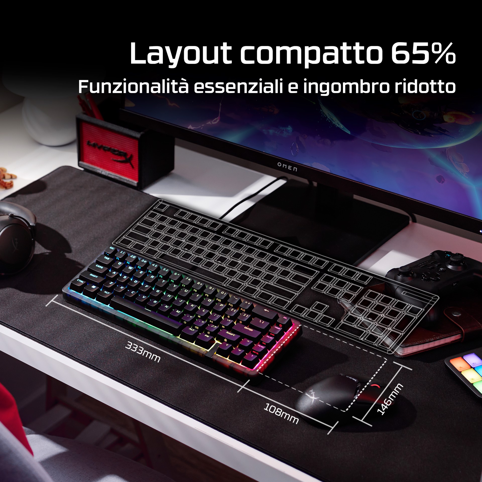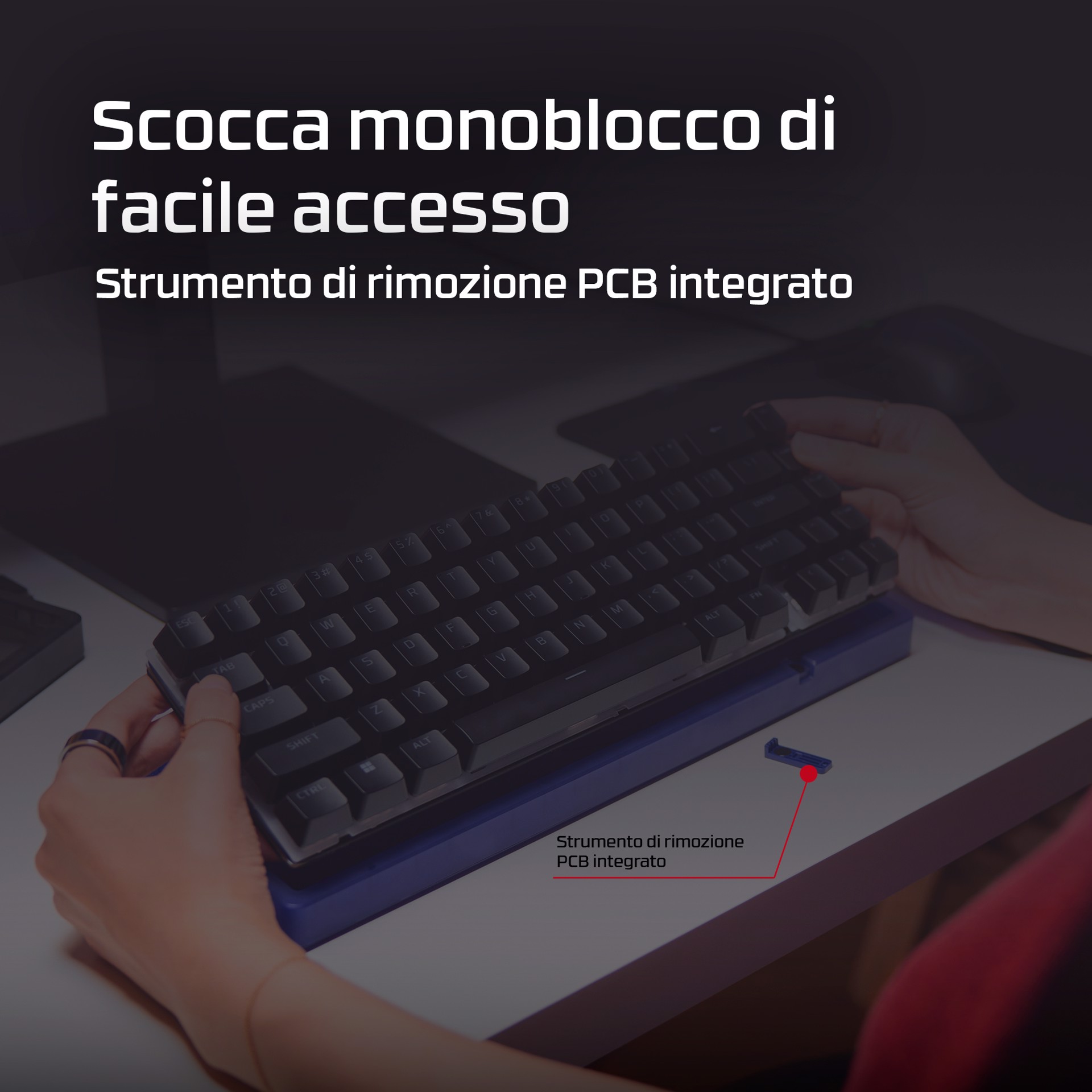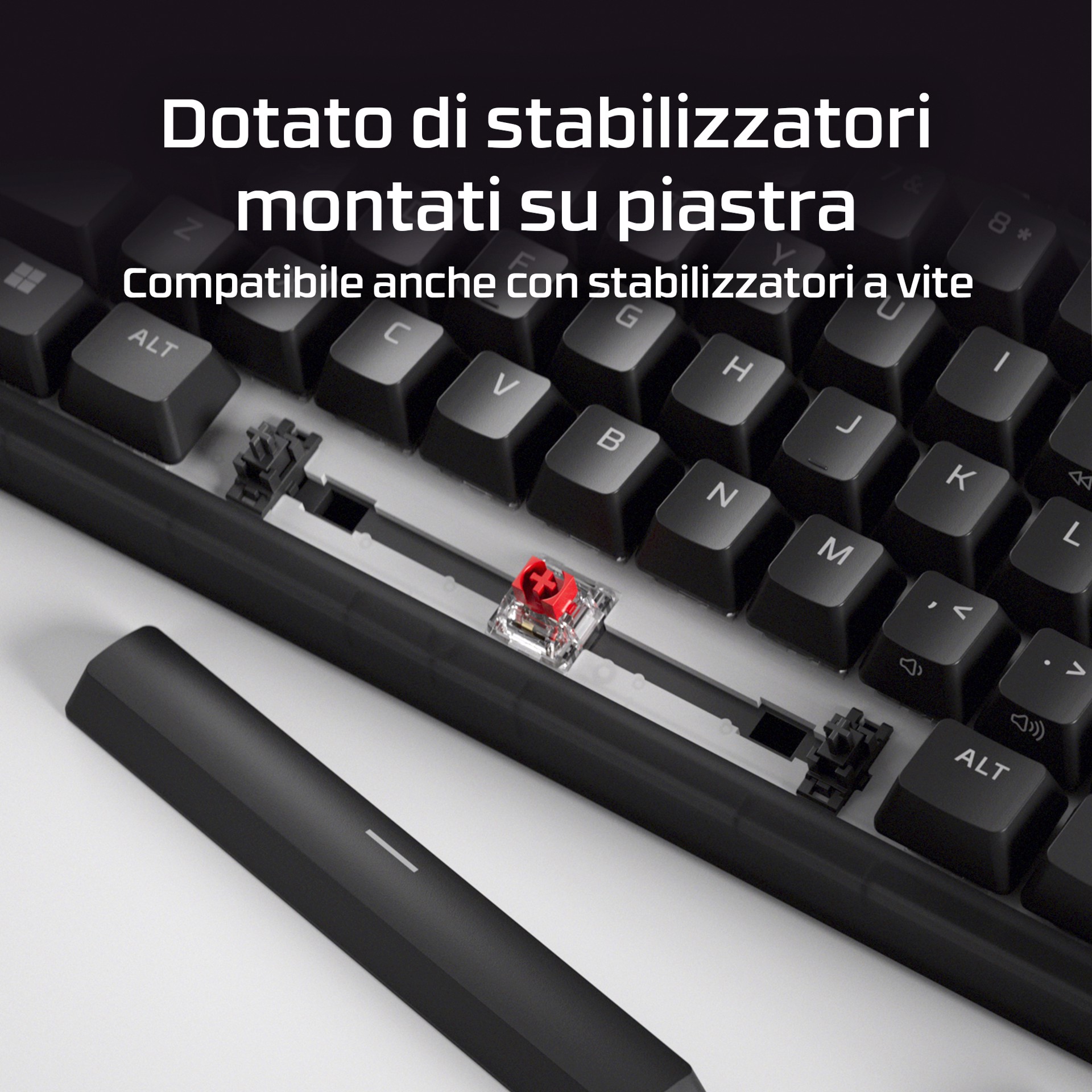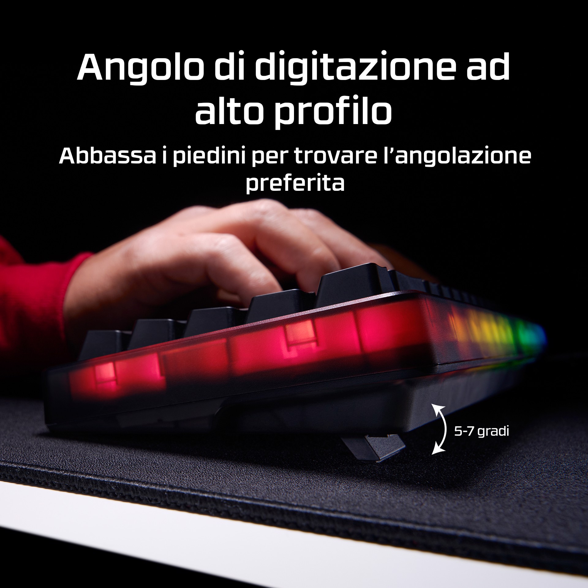 Gioca al meglio con Origins 2 65, una tastiera da gaming compatta progettata per la personalizzazione. Dotata di scocca e switch sostituibili, Origins 2 può essere personalizzata per creare la tua postazione di gaming unica. Cambia copritasti, switch e scocca in qualsiasi momento![1] Origins 2 65 elimina i tasti superflui mantenendo tutte le funzioni essenziali, riducendo l’ingombro e aumentando l'efficienza. Il layout 65% occupa meno spazio sulla scrivania e ti consente di immergerti completamente nel gioco. Sotto il cofano, troverai un supporto O-ring in silicone e una piastra in policarbonato per assorbire le vibrazioni e ridurre il riverbero per un'esperienza di digitazione silenziosissima. Ma questa tastiera non è solo ideale per scrivere. Con un polling fino a 8K, Origins 2 invia gli input al tuo PC fino a 8000 volte al secondo, assicurandoti l’esecuzione di ogni comando. La scocca ad alto profilo è dotato di piedini ribaltabili che consentono di regolare l’inclinazione per il massimo comfort e un'ergonomia ideale. Questa tastiera è dotata di switch HyperX Linear Red che forniscono un feedback rapido e fluido e una rapida corsa di attuazione di soli 1,8 mm. Gli switch HyperX utilizzano steli POM a mezza parete per offrire stabilità e affidabilità fino a 80 milioni di battute, e puoi sostituirli ogni volta che vuoi. Le basi hot-swap dei tasti sono compatibili con la maggior parte degli switch per tastiere meccaniche a 5 o 3 pin. Origins 2 è completamente personalizzabile con il software HyperX NGENUITY. Puoi facilmente rimappare le funzioni dei tasti, assegnare macro, personalizzare gli effetti RGB e creare fino a 3 profili per la massima funzionalità in qualsiasi situazione.