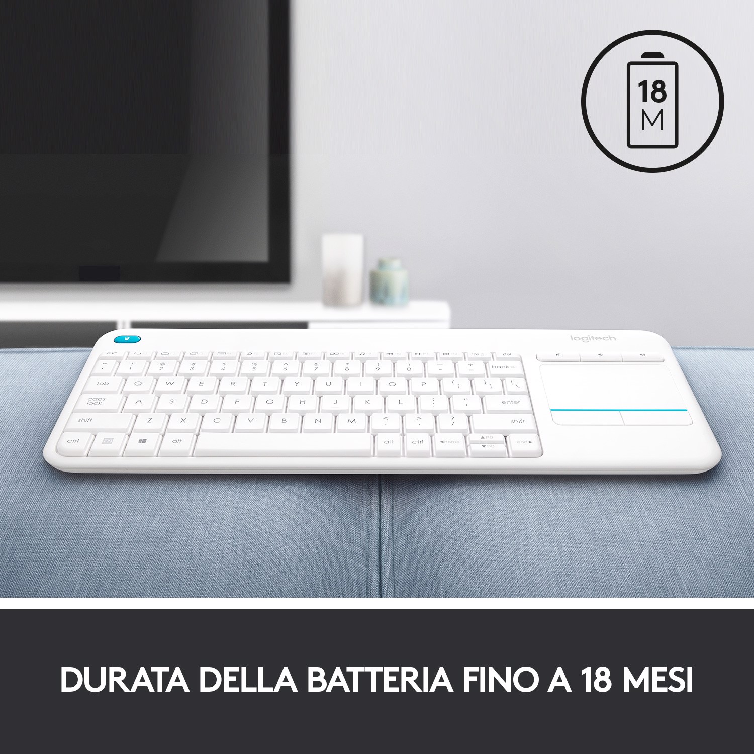 LOGITECH K400 Plus Tastiera Wireless Touch TV, Facili Controlli Multimediali e Touchpad Integrato, Tastiera HTPC per TV Collegata al PC, Windows, Android, Chrome OS, Laptop, Tablet