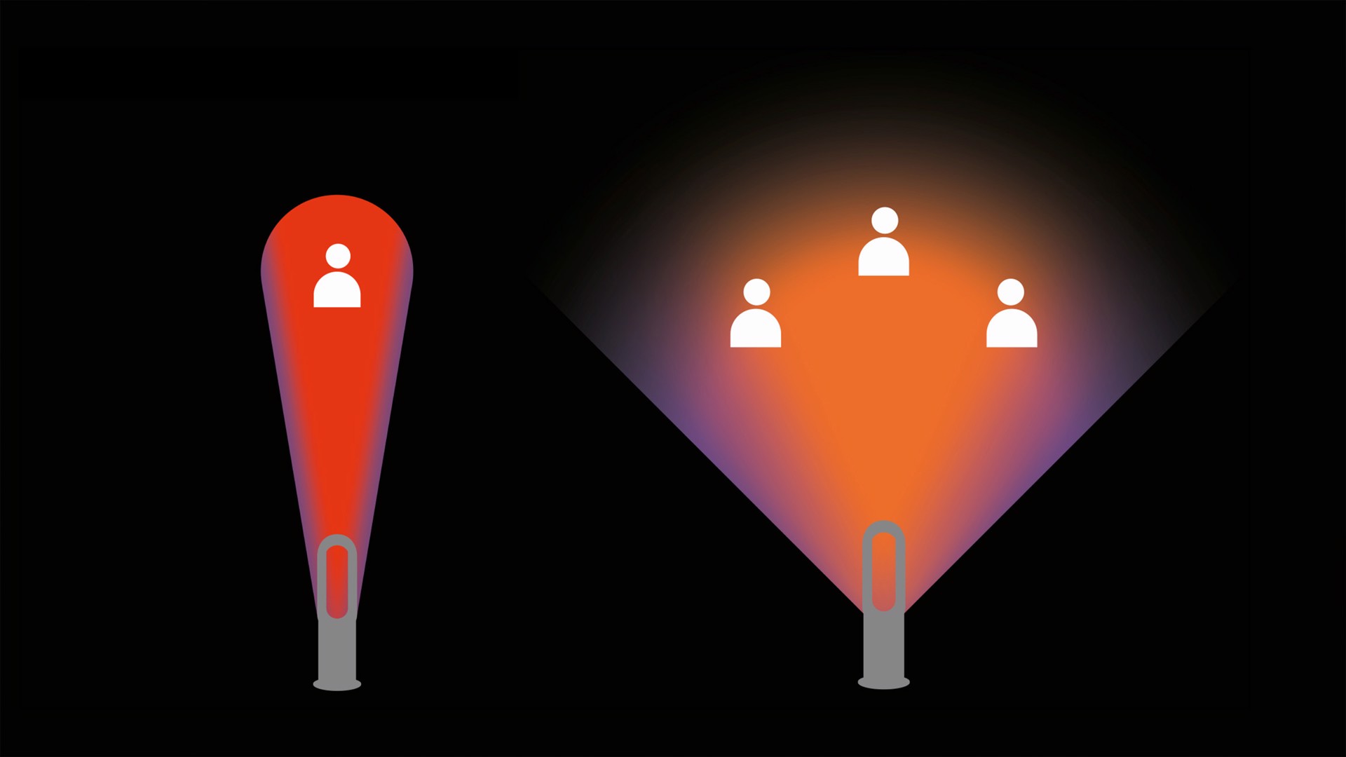 La tecnologia Air Multiplier™ amplifica il flusso d'aria diffondendo un flusso uniforme in tutta la stanza.