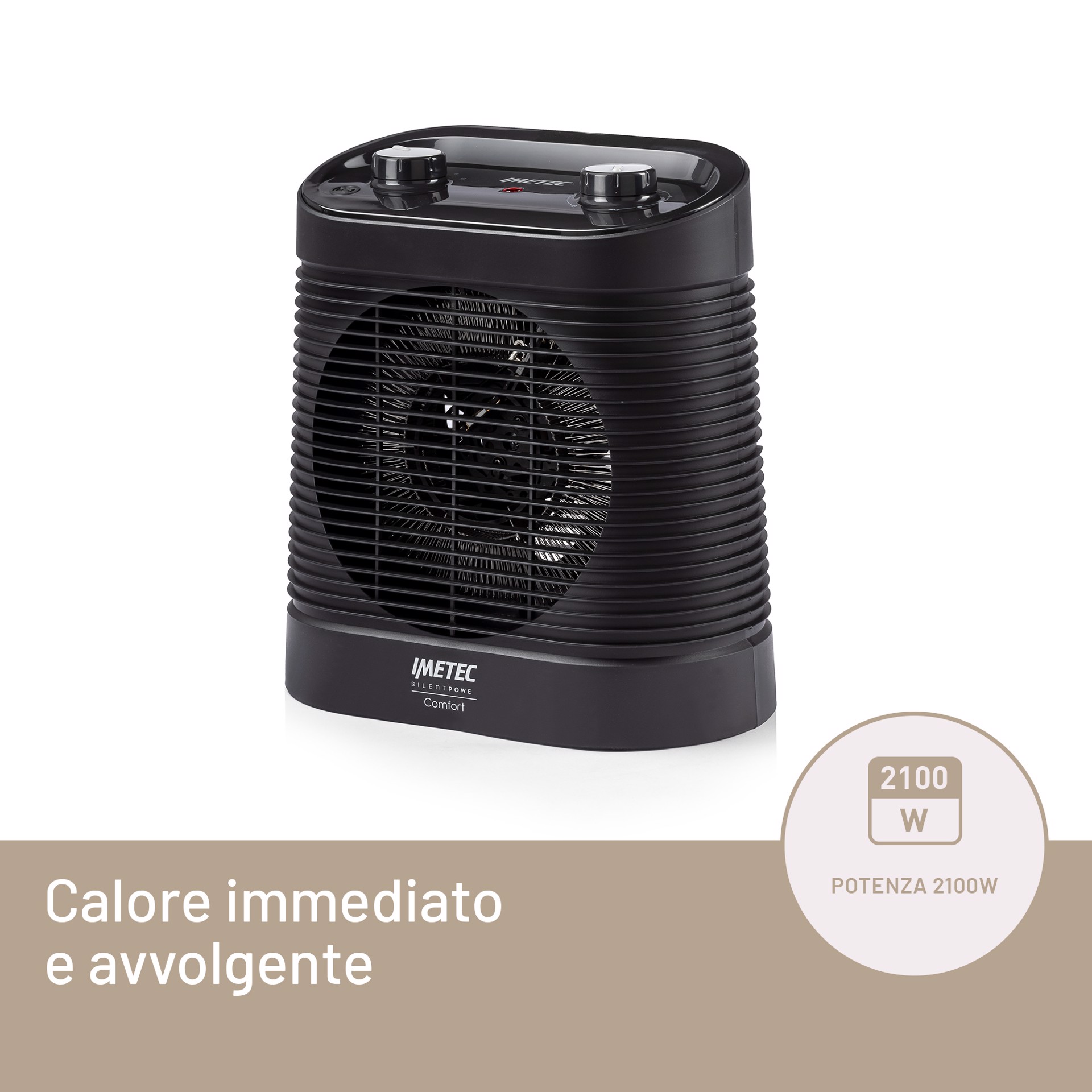 IMETEC Silent Power Comfort, termoventilatore silenzioso e compatto, stufetta elettrica, 2100 w, 4 funzioni, termostato ambiente e di sicurezza, funzione antigelo, maniglia