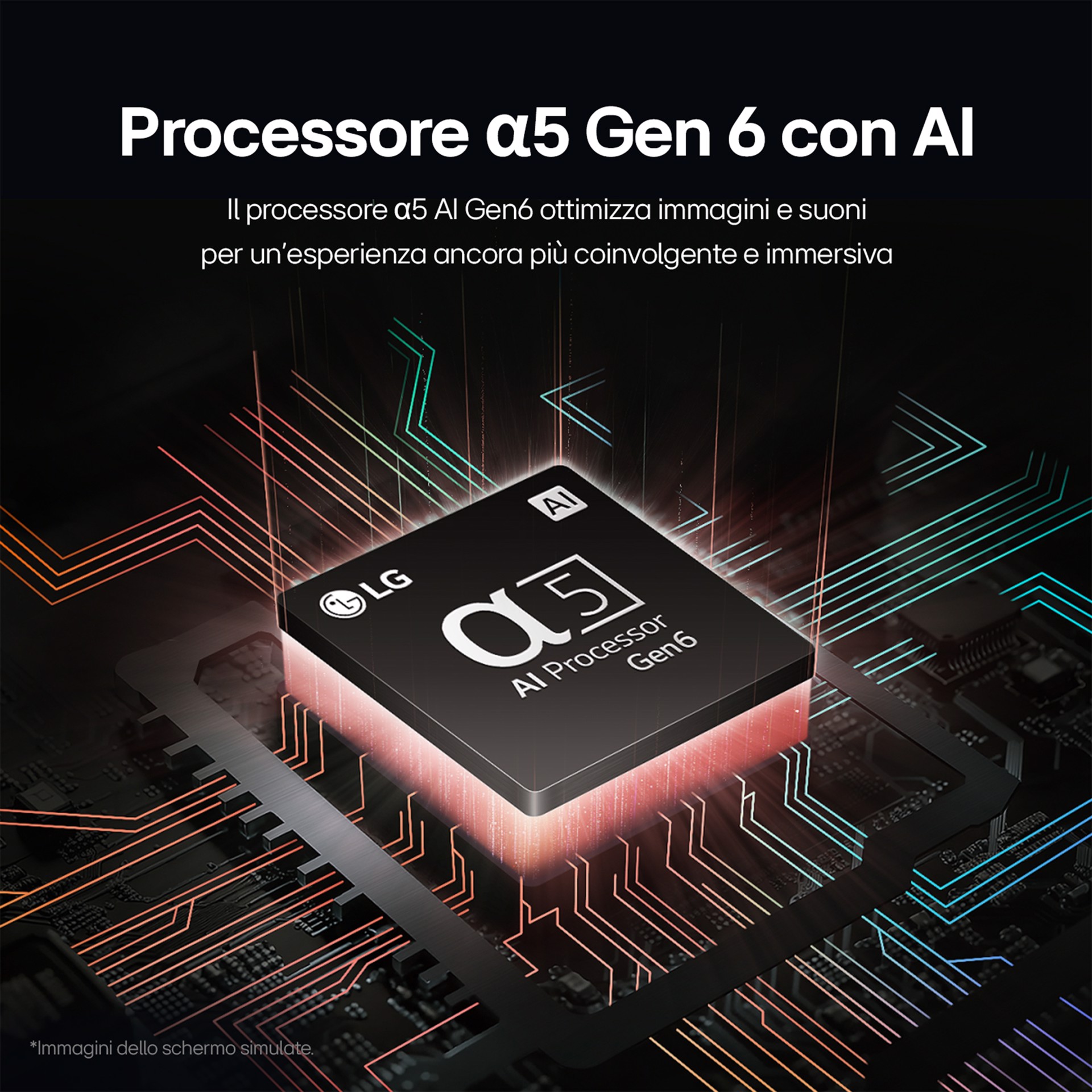 Il nuovo processore α5 Gen 6 migliora i contenuti che guardi sul TV attraverso un'accurata elaborazione delle immagini e del suono. Il processore controlla la luminosità dello schermo applicando dei sofisticati algoritmi basati sull'Intelligenza Artificiale. Per il suono, la funzione AI Sound riconosce cosa stai riproducendo e adatta di conseguenza la resa audio.