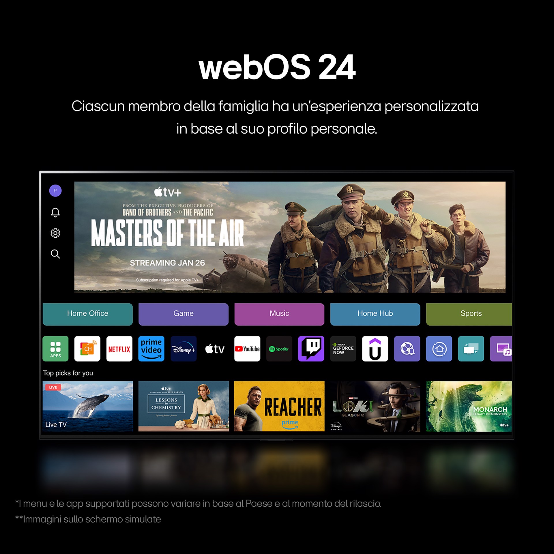 Per le tue maratone film o serie TV non hai che l'imbarazzo della scelta fra i tantissimi servizi di streaming che trovi sulla piattaforma smart webOS di LG. Con Netflix, Disney+, Amazon Prime, Apple TV+, RaiPlay, Rakuten TV, NOW e molte altre ancora avrai sempre qualcosa di straordinario da guardare.
