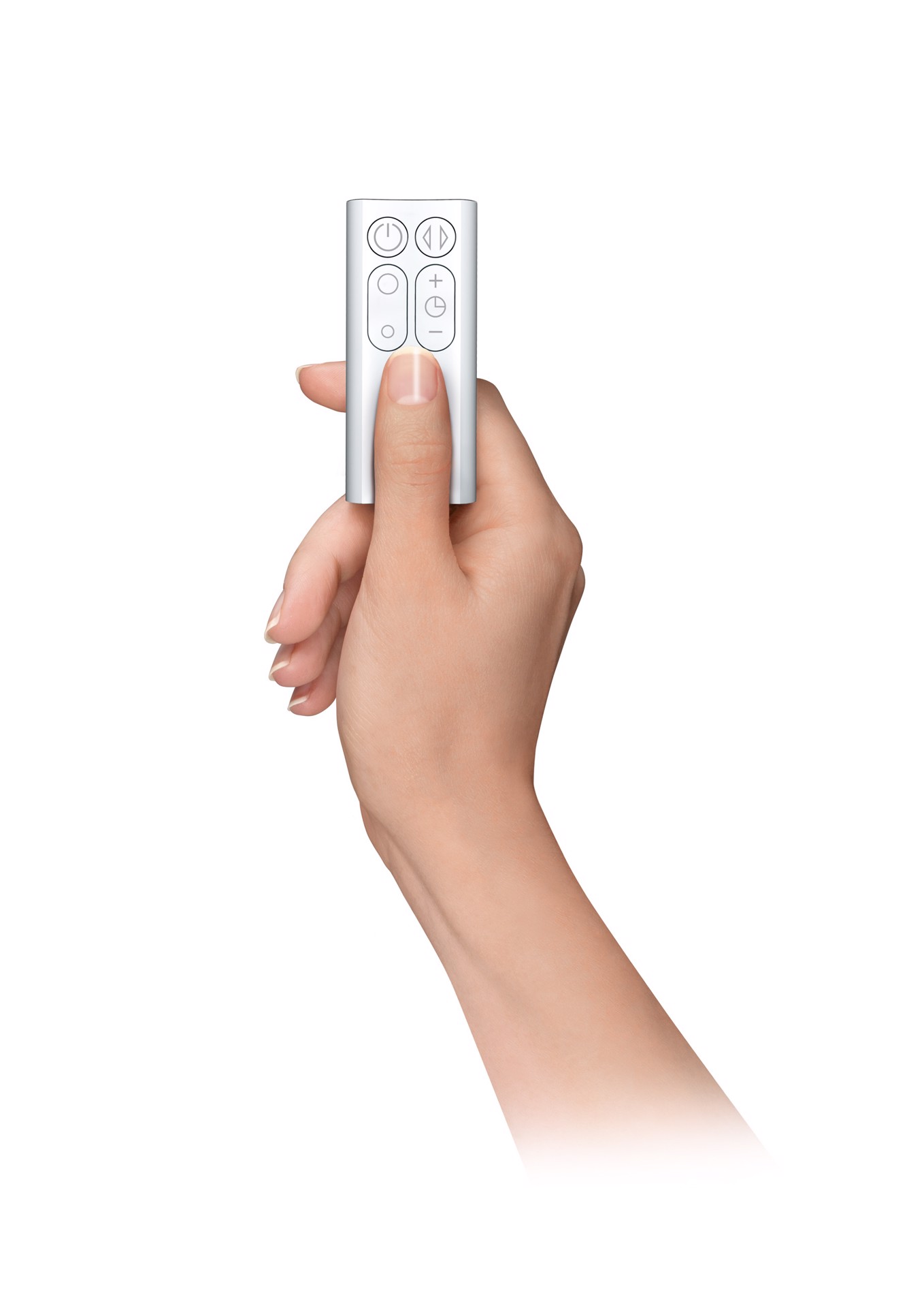 Con 10 precise impostazioni del flusso d'aria, timer per la modalità notturna, tasto di accensione/spegnimento ed regolazione dell'oscillazione. Curvo e magnetizzato per essere riposto comodamente sull'apparecchio.