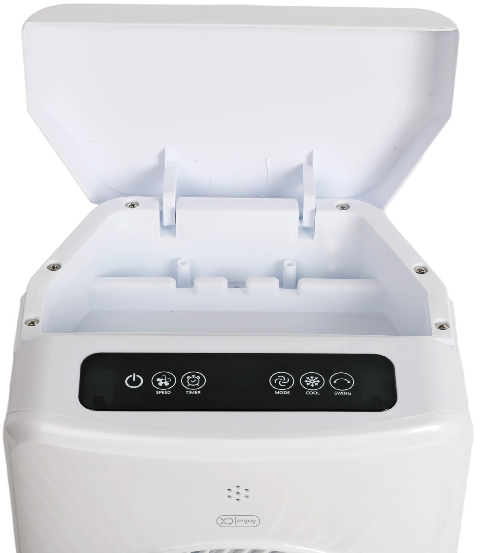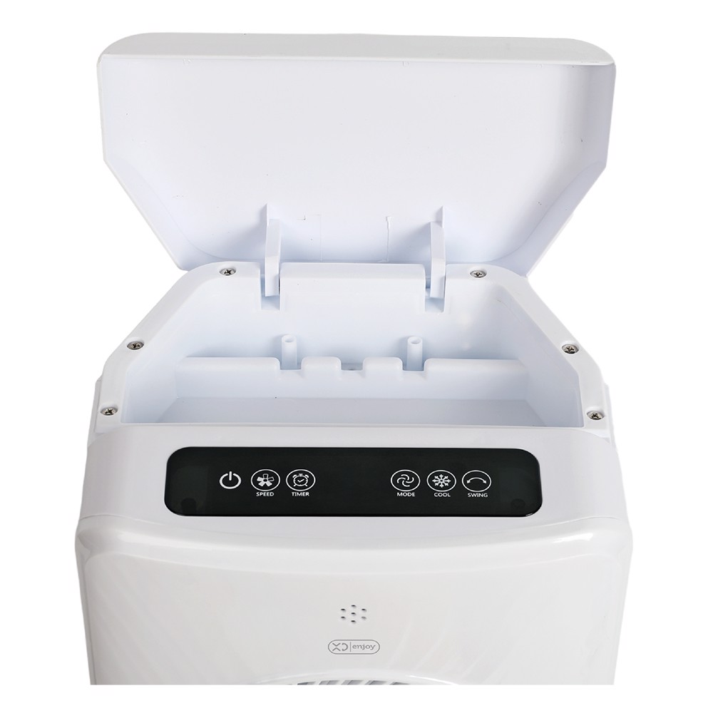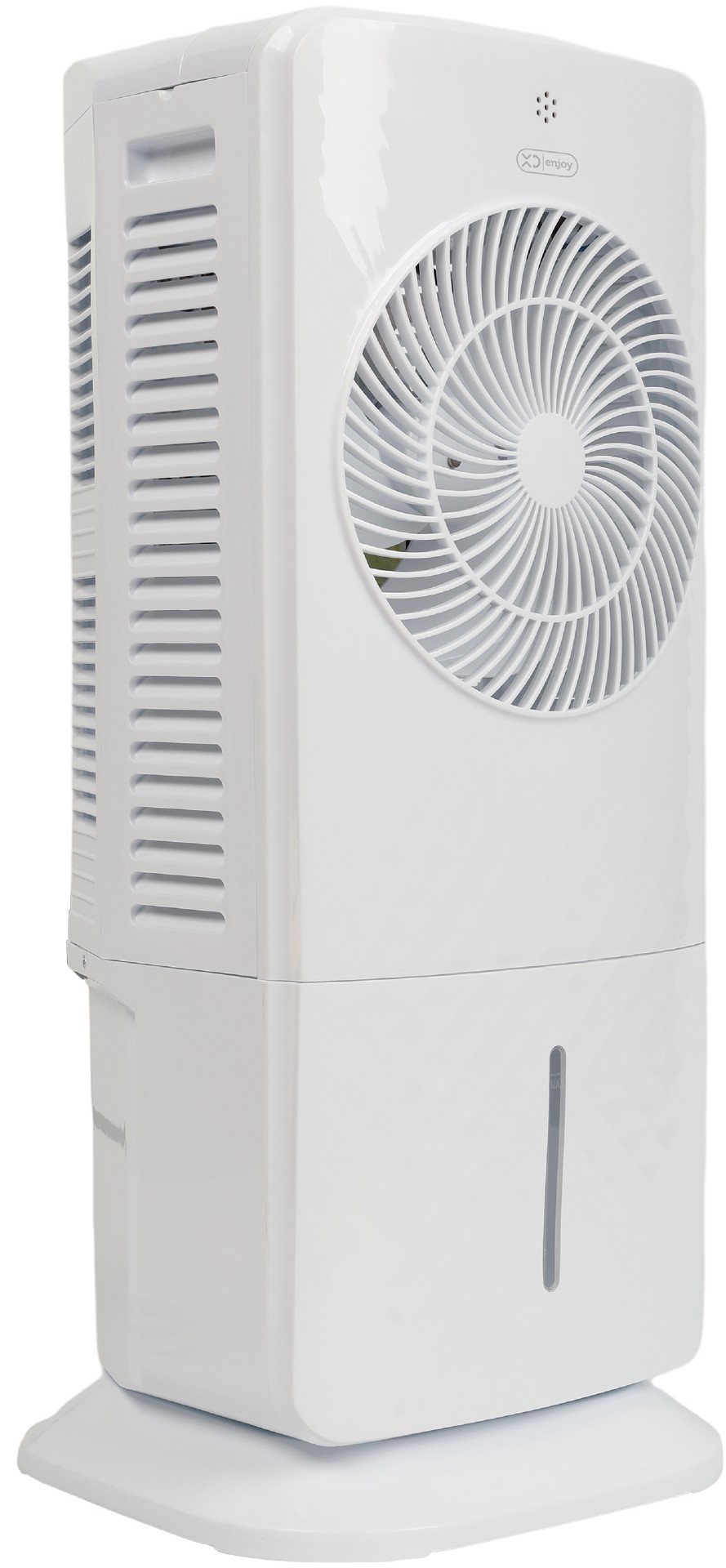XD Enjoy XDKYNDL10. Tipo: Raffrescatore evaporativo, Colore del prodotto: Bianco, Tipo di controllo: Touch, Wireless. Capacità tanica acqua: 5 L, Adatto per stanze fino a: 20 m², Flusso d'aria: 1009,8 m³/h. Carico di collegamento: 65 W, Tensione di ingresso AC: 220 - 240 V, Frequenza di ingresso AC: 50/60 Hz. Larghezza: 260 mm, Profondità: 255 mm, Altezza: 593 mm