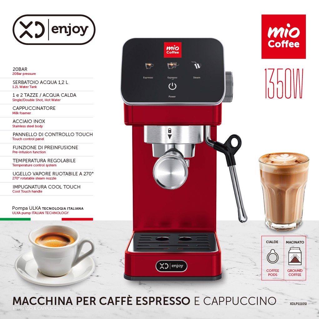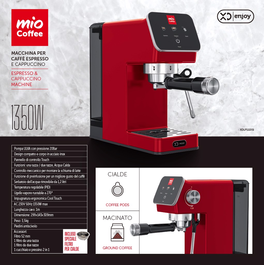 XD Enjoy Macchina per Caffe a Cialde Espresso e Cappuccino 1350W